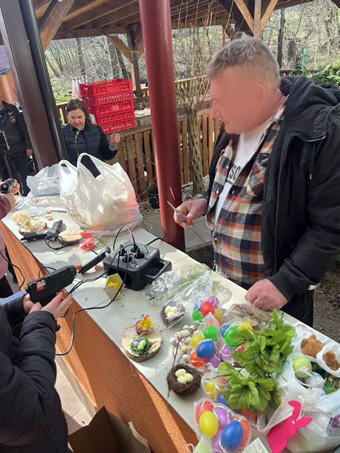 Táto aktivita priniesla nielen príjemne strávený čas, ale aj priestor na rozvoj kreativity, spolupráce a radosti z vlastnoručne vytvorených dekorácií. Klienti sa aktívne zapájali do celého procesu- od samotnej prípravy až po finálne zdobenie. Spoločne sme si pripravili rôzne pomôcky, ako farebné papiere, stužky, vajíčka, lepidlá či prírodné dekorácie. Následne sa každý mohol realizovať podľa vlastnej fantázie a vkusu. Výsledkom boli krásne a originálne veľkonočné ozdoby, ktoré sme následne použili na výzdobu priestorov zariadenia. Táto aktivita nebola len o tvorení, ale aj o rozvíjaní jemnej motoriky a podpore sebavyjadrenia.