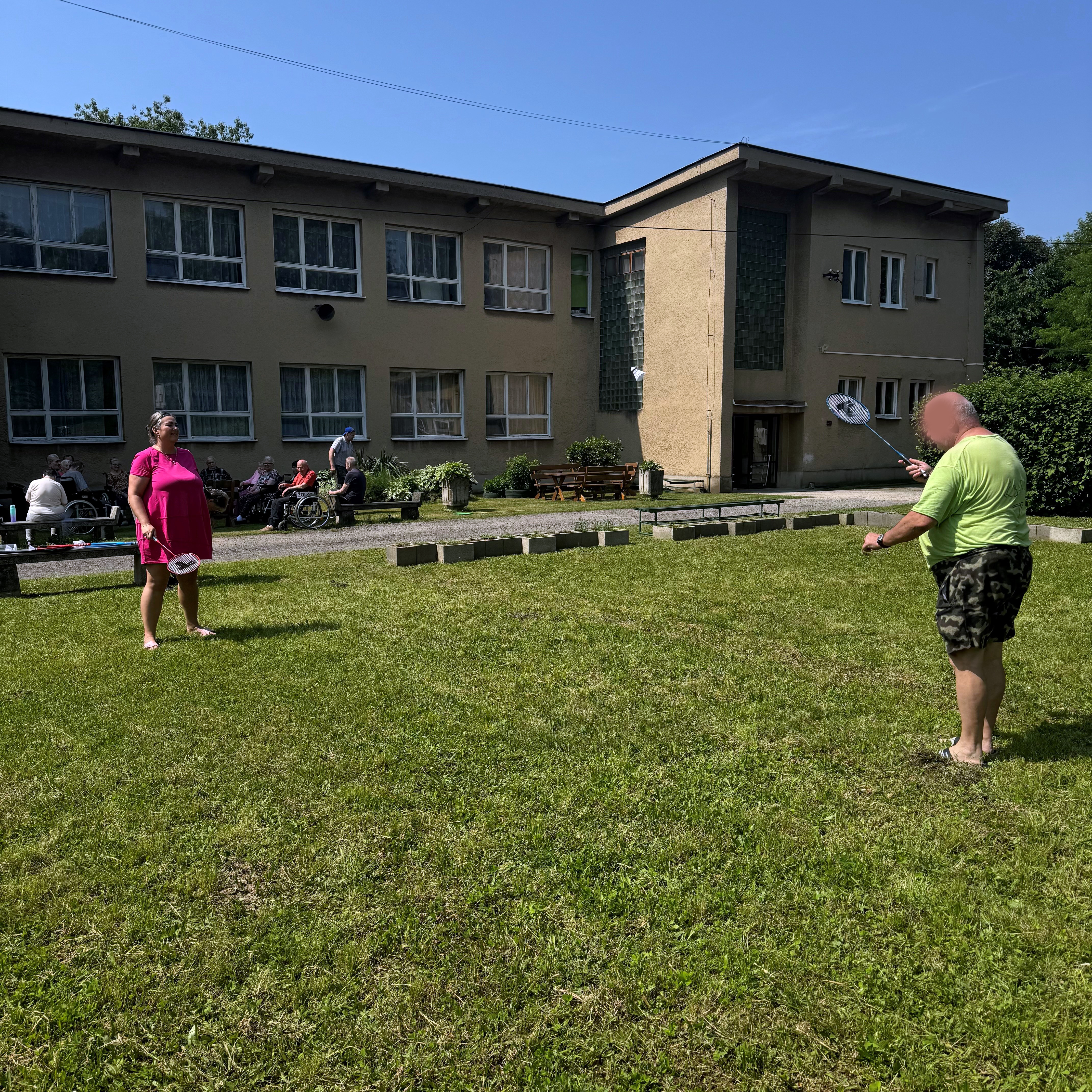 V našom Zariadení opatrovateľskej služby sa v tomto letnom období využívajú teplé dni na športové aktivity, a pobyt vonku.